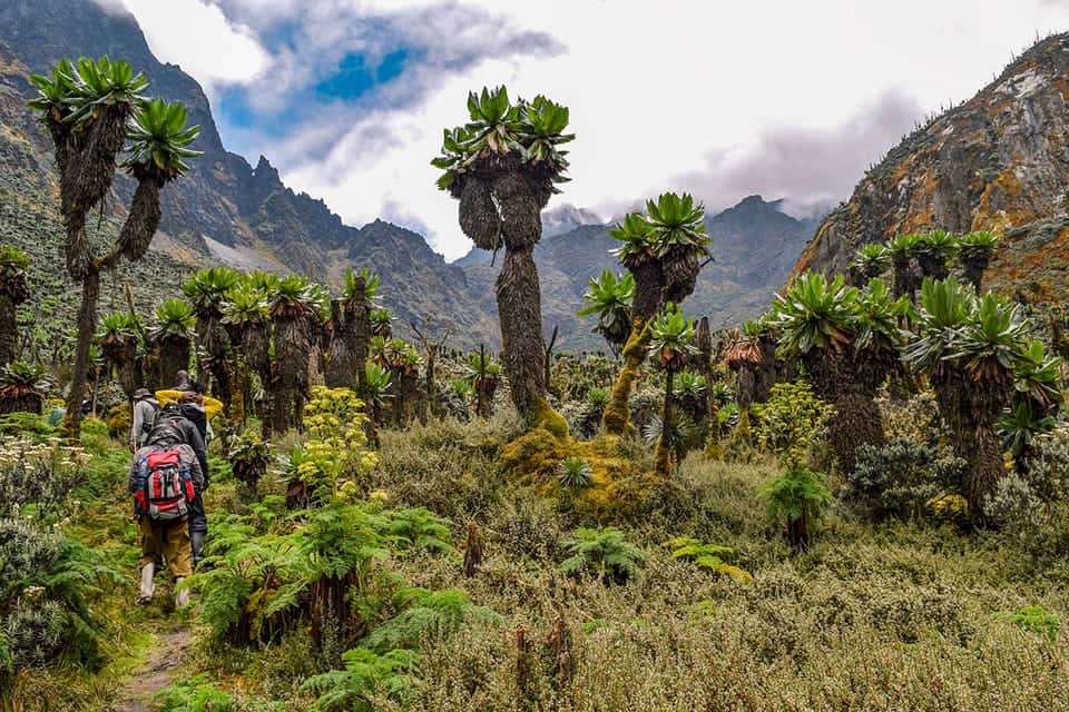 Je trekking in de Rwenzori Mountains begint meestal in het dorpje Nyakalengija, aan de rand van het Rwenzori Mountains National Park in westelijk Oeganda. Ik heb diverse Rwenzori trekkings vooraf bekeken en koos voor de de 4-daagse naar de Garden of Eden. De eerste dagen klim je omhoog, op de derde dag klim je naar meer dan 4.000 meter en zie je de ongekend mooie planten en bloemen, waardoor dit gebied wereldberoemd is. daarna daal je weer af en na een laatste nacht in een berghut kom je weer aan in de bewoonde wereld.
