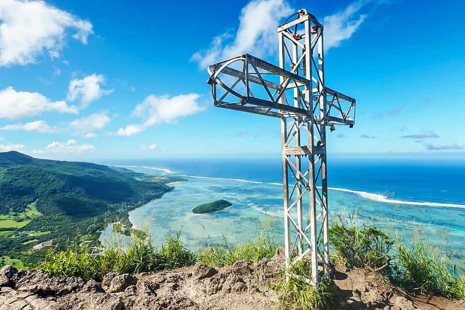 Je kunt niet naar de top van 556 meter lopen, maar het hoogste toegankelijke punt ligt rond de 465 meter. Bij het grote kruis op het uitzichtpunt vergeet ik alles: de hitte, het stof en mijn brandende kuiten. De wind blaast verkoelend over mijn bezwete gezicht, en ik voel me voor heel even gewichtloos. Er zijn diverse locaties voor magische foto's van het berglandschap met de tropische lagunes erachter.